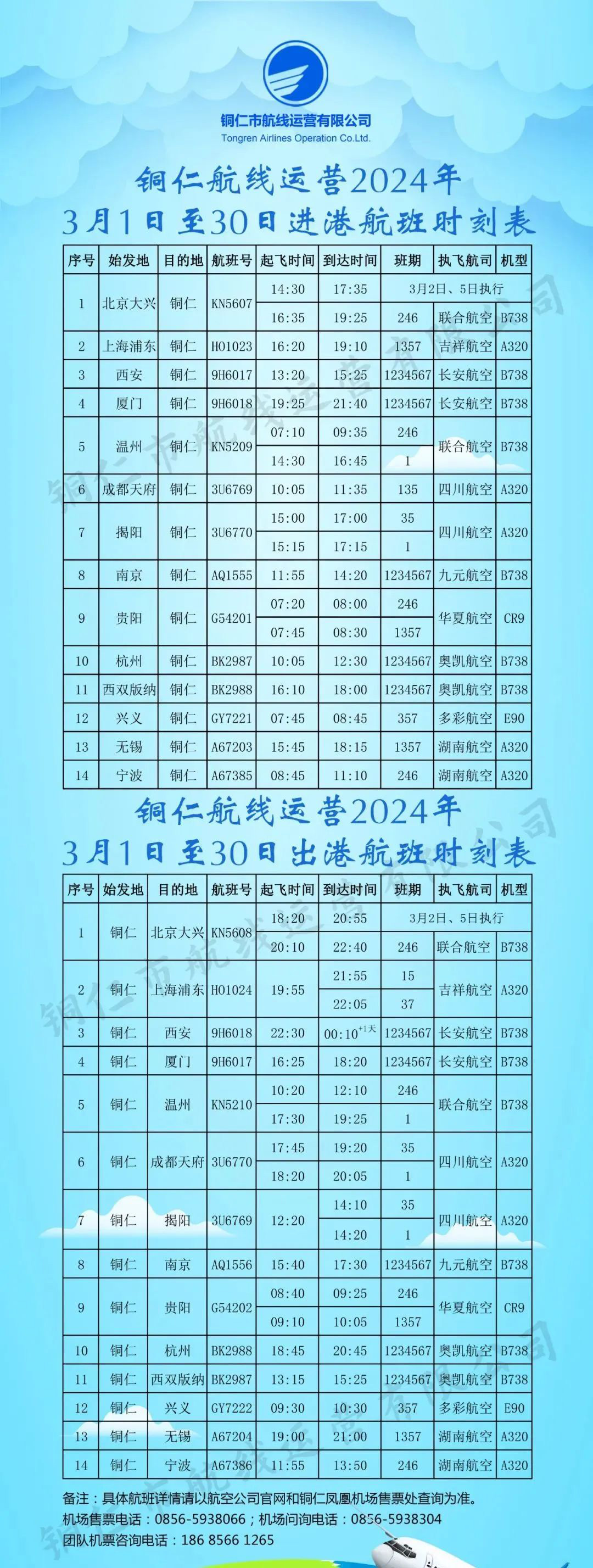 收藏!銅仁鳳凰機場3月航班時刻表出爐